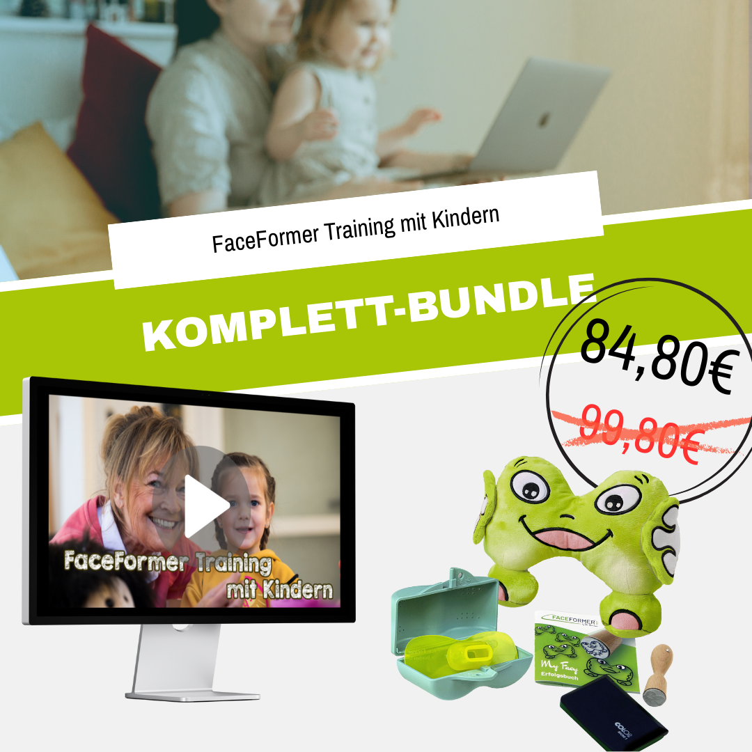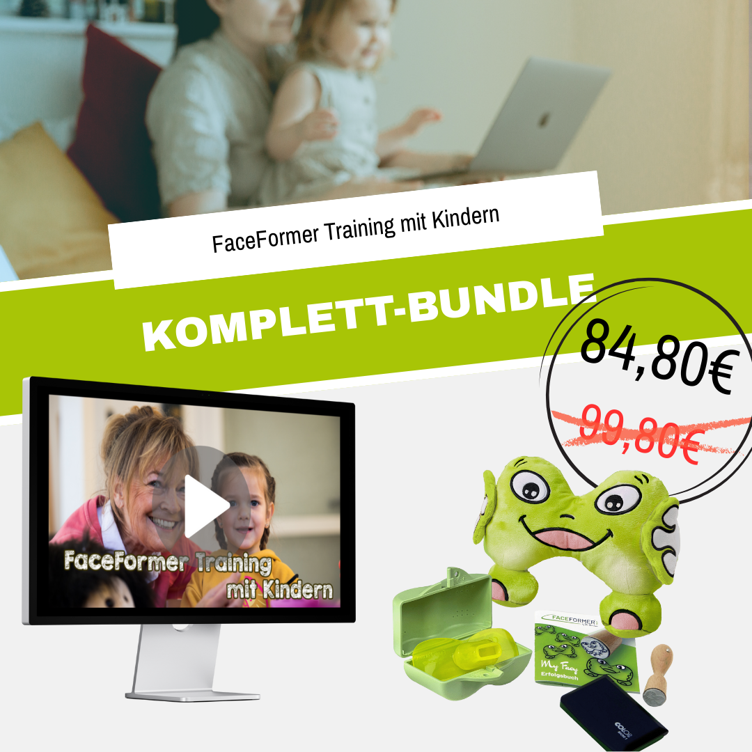 Dieses exklusive Bundle vereint den umfassenden Online-Kurs für FaceFormer-Training mit dem speziell für Kinder entwickelten FaceFormer® ZERO Set. So haben Sie alles für die Theorie und Praxis in einem Paket.