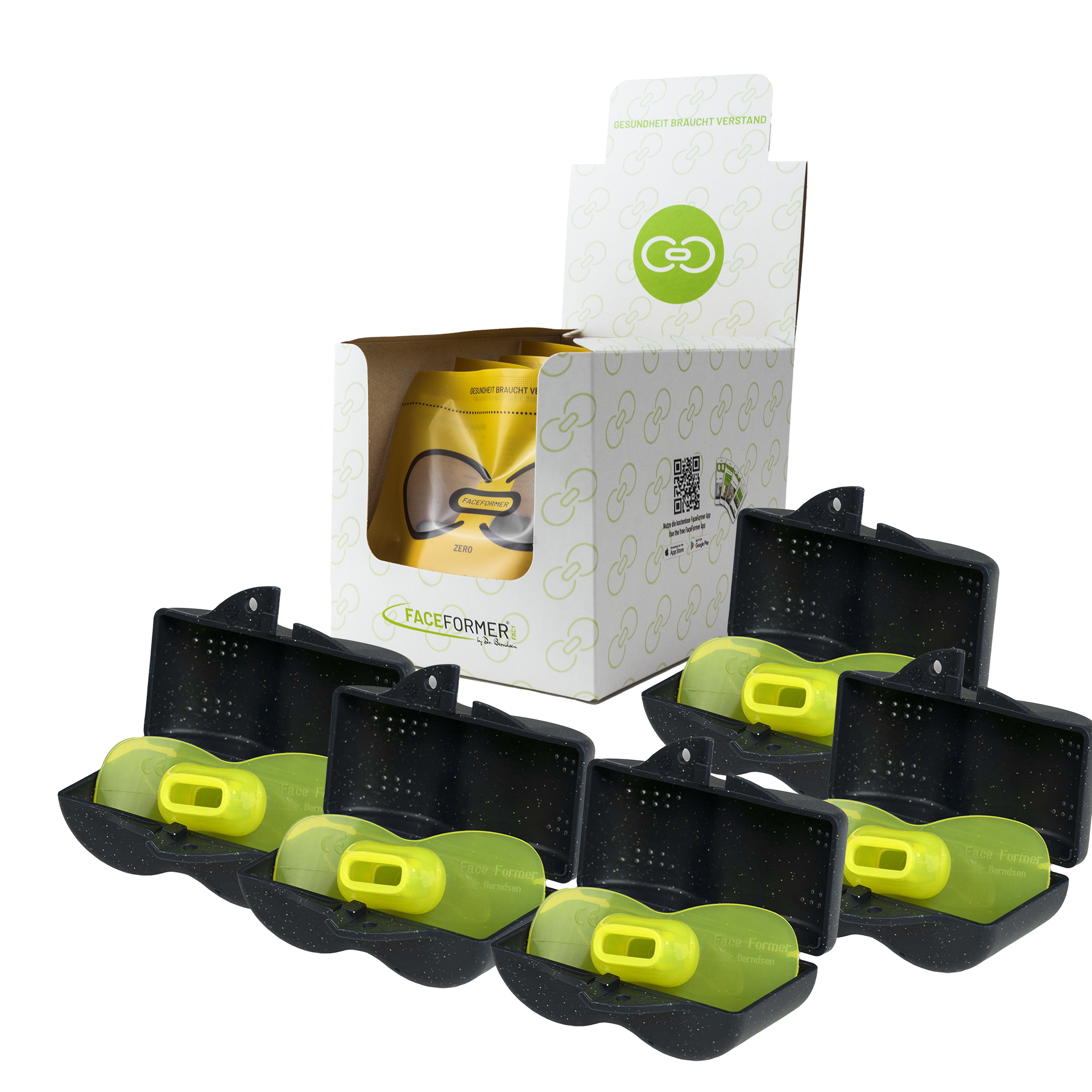 Save 20% with the FaceFormer Zero Advantage Package V. Get 5 Face Formers without training DVD for the individual price of 4. So you get 1 FaceFormer free. Whether dentist, orthodontist, speech therapist or physiotherapist, the FaceFormer has been used successfully for many years. To meet demand, we have created these special savings offers for professional use.